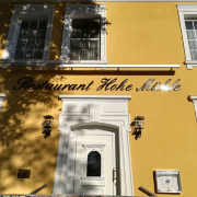 Nachdem Sie die Elbbrücke passiert haben, folgen Sie der B2 an der T-förmigen Ampelkreuzung nach links. An der nächsten Ampel folgen Sie abermals der B2 nach links, um auf der Brücke die B187 und die Bahnlinie zu überqueren. Am Fuße der Brücke verlassen Sie die rechtsabbiegende B2 und fahren an der Ampelkreuzung geradeaus in die Dobschützstraße. Wenn Sie nach ca. 2 km einen Bahnübergang passiert haben, sehen Sie etwa 100 m links vor sich einen Hohe Mühle Hinweis, der Sie nach rechts in die "Rote Landstraße", welche später in die Straße "An der Hohen Mühle" übergeht, führen soll. Dieser Straße folgen Sie bis in den Ortsteil Reinsdorf und finden wenige hundert Meter auf der linken Seite das Hotel & Restaurant Hohe Mühle.
